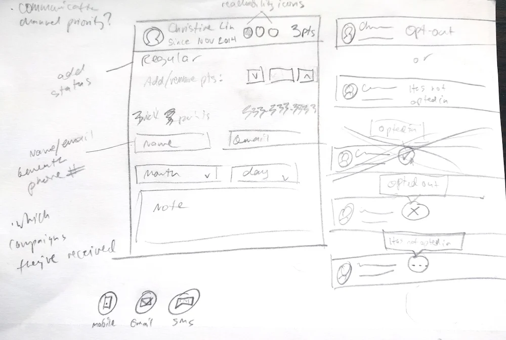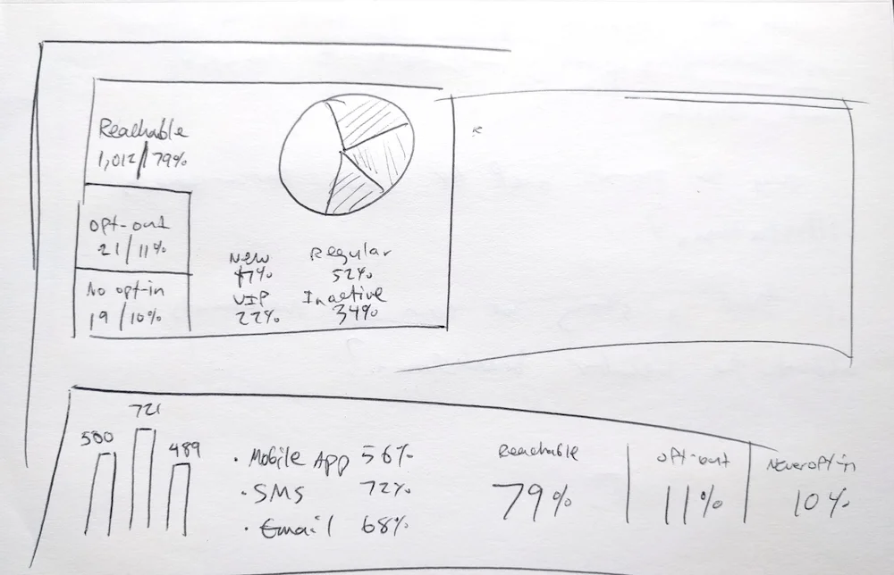 For this project, my task was to design a solution for the FiveStars merchant dashboard that gives business owners this "campaigns reach" information at both the aggregate and customer level, while providing the context of our specific messaging channel priorities.